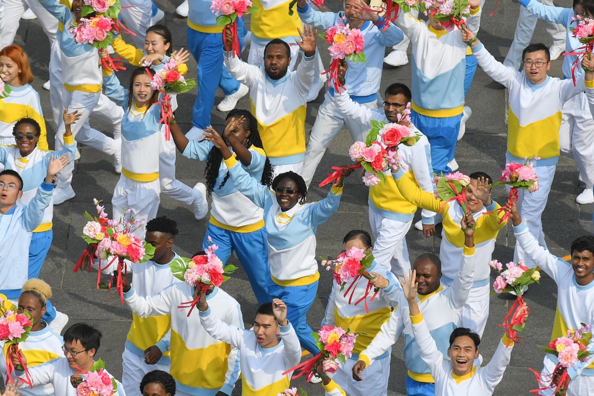 10月1日上午,慶祝中華人民共和國成立70周年大會在北京天安門廣場隆重舉行。這是“人類命運共同體”方陣。新華社記者 李尕 攝 參與其中 值得!