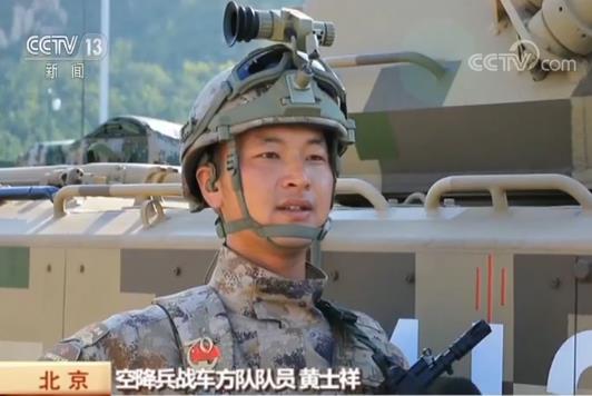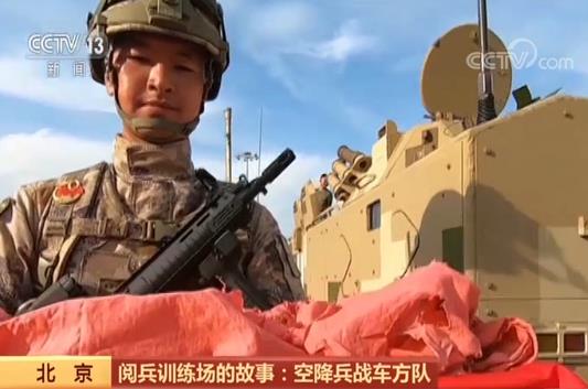 這是空降兵戰車方隊裝備停放場,這位受閱隊員叫黃士祥??战当陈谩吧细蕩X特功八連”一班班長。這次受閱,黃士祥還有一項特殊的任務,他的戰車里,將承載著一份與眾不同至高的榮譽。