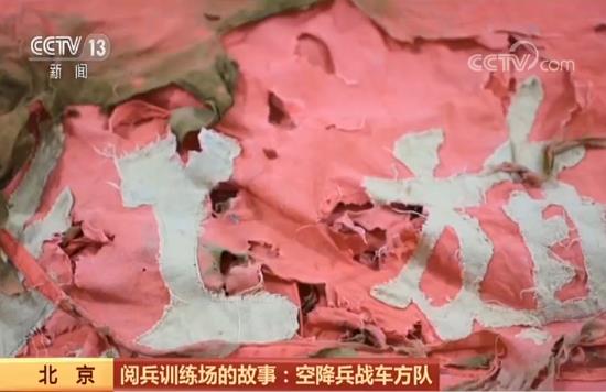 空降兵戰車方隊隊員 黃士祥:剛剛我送上戰車的是兩面象征我們部隊精神的戰旗,放在上面的是一面有381個彈孔的戰旗,象征著我們部隊一直傳承至今的上甘嶺精神,下面一面是我們為了迎接閱兵制作的新戰旗。我們要帶著這兩面象征部隊精神傳承的戰旗駛過天安門。
