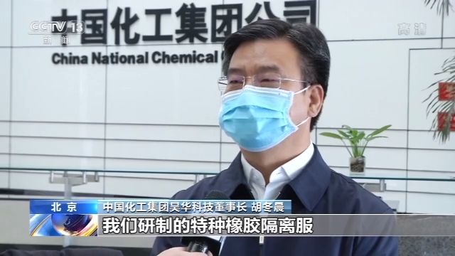 中國化工集團昊華科技董事長 胡冬晨:我們研制的橡膠隔離服經過消毒殺菌后,可反復使用5~30次不等,目前隔離服日產能達到2500套。