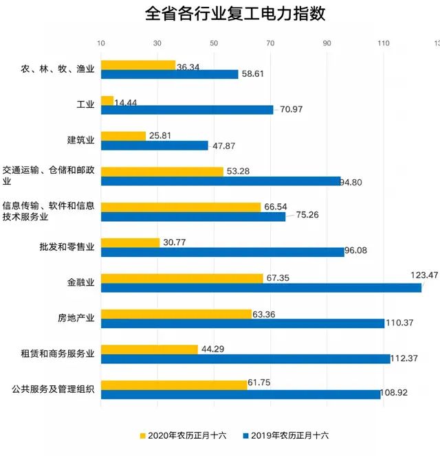 浙江省2月9日各行業復工電力指數(圖片來自國家電網)