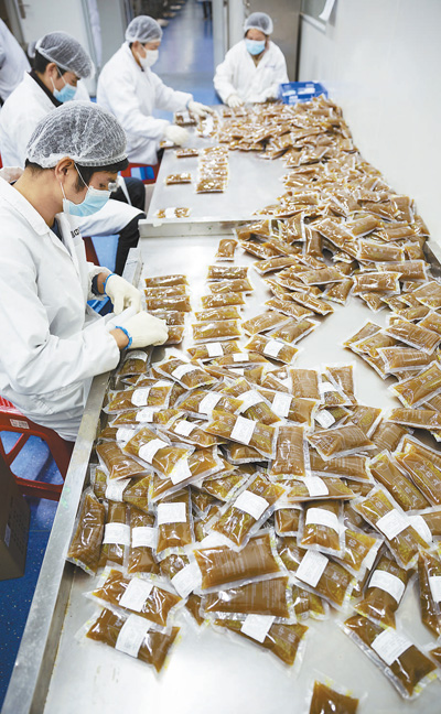 3月2日,湖北武漢一家中藥公司,工人正在為灌裝好的中藥貼上標簽。據悉,該公司在疫情期間,按照國家衛生健康委辦公廳和國家中醫藥管理局辦公室聯合印發的《新型冠狀病毒肺炎診療方案(試行第六版)》中推薦的藥方,為武漢市7家醫院、10個方艙醫院等單位生產、煎煮和配送中藥湯劑?! ”緢笥浾?張武軍攝