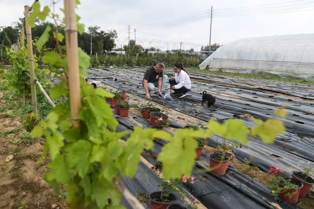 在“花木之鄉”江蘇沭陽縣,來自新疆伽師縣的米爾扎提·吾馬爾和妻子早然木·吐爾遜已經“扎根取經”一年有余,他們在扎下鎮流轉了20多畝土地,種植月季花,學習現代農業技術。