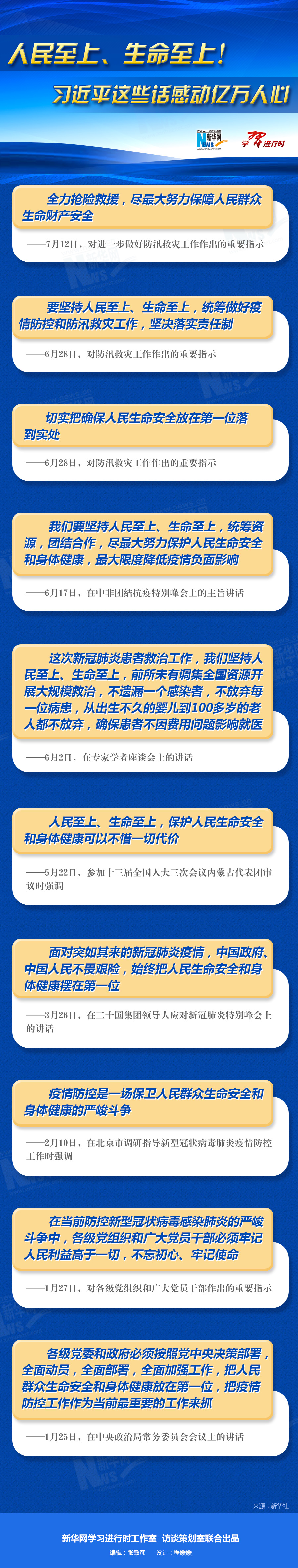 從抗擊新冠肺炎疫情到防汛救災,習近平強調最多的就是“第一位”的原則:始終把人民群眾放在第一位。