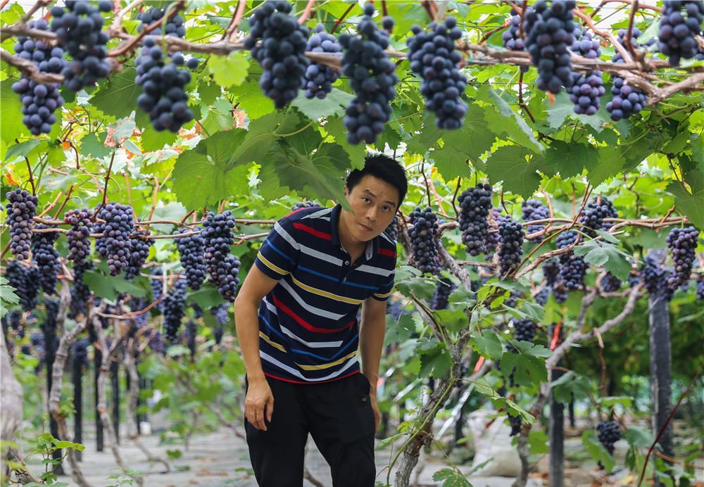 在四川省眉山市彭山區果園村,張雄在查看葡萄長勢(6月16日攝)。新華社記者 王曦 攝 “種上了好果子,娶來了好妻子,生了個好兒子,買了個好車子,住進了好房子,過上了好日子?!睂τ趶埿蹃碚f,小康生活就是這六個“子”。 十多年前,果園村卻名不副實。全村7000多畝土地,以傳統農業種植為主,村民普遍不富裕。 “我們四處考察,最后敲定葡萄種植作為村里的主導產業?!惫麍@村黨總支書記李永偉說,從最初試種2畝,到如今的5200畝,小葡萄成了增收奔小康的大產業,去年村民人均收入超過3.1萬元。