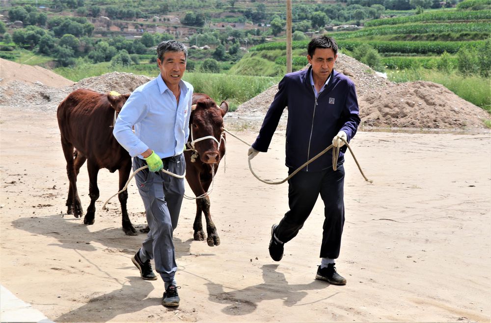 7月20日,甘肅省平涼市靜寧縣靈芝鄉俊峰村的村民將在當地養牛專業合作社的“母牛超市”購買的牛牽回家。新華社發(王毅 攝) |