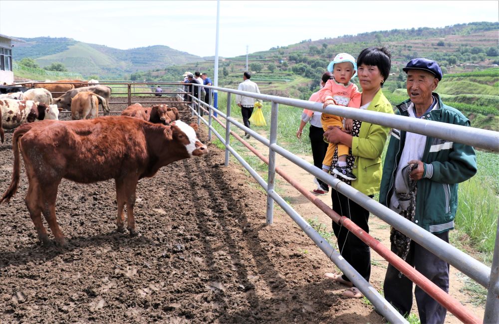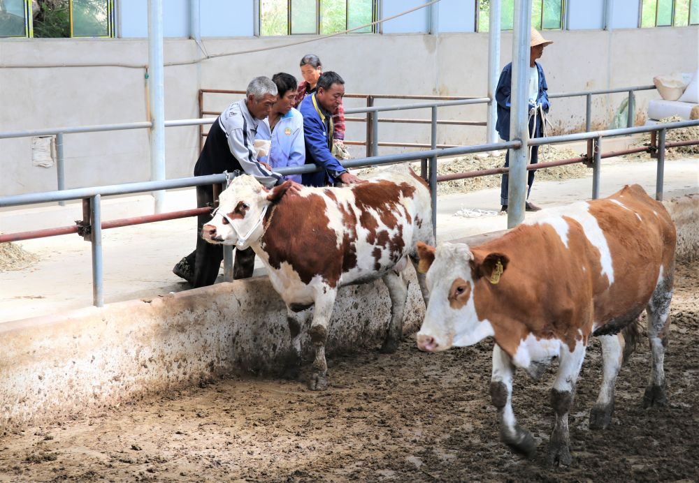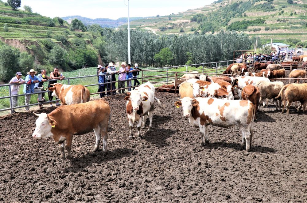 7月20日,甘肅省平涼市靜寧縣靈芝鄉俊峰村的村民正在當地養牛專業合作社的“母牛超市”里選購牛。新華社發(王毅 攝)