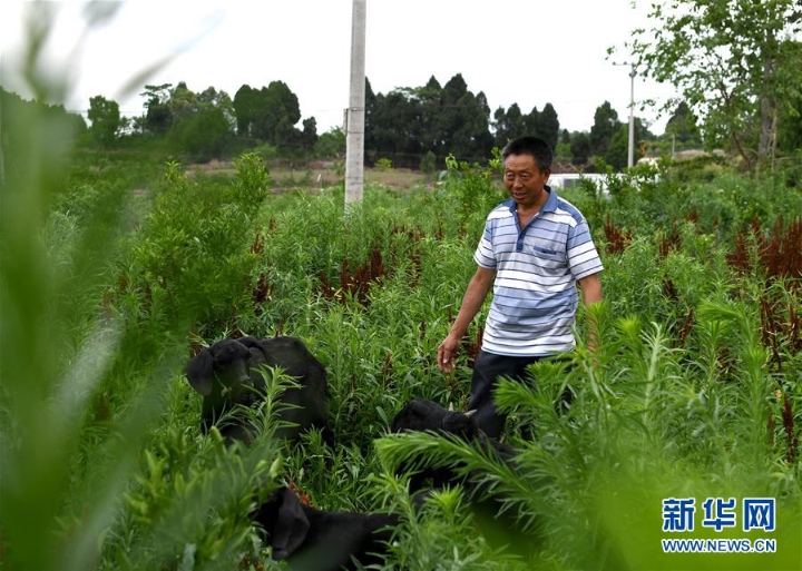 6月13日拍攝的四川省廣安市革新村(無人機照片)。 新華社記者 楊進 攝 “喜羊羊”讓村民喜洋洋 連綿的小山坡上,樹木蒼翠,綠草茵茵,一群群黑山羊低頭吃草,遠遠望去,像綠毯上點綴的黑珍珠。 山坡下,62歲的樂至縣金鼓村村民楊老漢,一邊在柑橘園修枝,一邊笑呵呵地說:“‘雙掛鉤’讓我住上了好房子,‘喜羊羊’讓我過上了好日子?!?/p> 金鼓村曾是川中丘陵地區一個省級重點貧困村。楊老漢所說的“雙掛鉤”,是指城鄉建設用地增減掛鉤試點項目,加上危房改造項目支持,作為貧困戶的他,沒花多少錢就住進了安全舒適的新房子。 “喜羊羊”則是當地2015年啟動的精準扶貧項目,采取“政府+企業+合作社+農戶+保險”的模式,確保黑山羊養殖標準化、收購有門路、意外有保障。 楊老漢最初分到3只母羊,一年后母羊產下羊羔,他將母羊轉給其他貧困戶,自己保留小羊羔繼續飼養。 “技術、賣羊都有人管,我只管把羊喂好就行,現在都30多只嘍?!睏罾蠞h說,除了養羊,他還到柑橘園、藕塘打工,去年就摘掉了“窮帽子”。 金鼓村黨支部書記楊文武告訴記者,受益于“雙掛鉤”項目,目前全村有260戶村民搬進了生態宜居的聚居新區,其中貧困戶76戶。如今,脫了貧的村民都親切地把“喜羊羊”項目叫“幸福喜羊羊”。