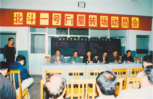 在北斗一號F1星轉場動員會上,大家圍繞保質量保安全展開討論。