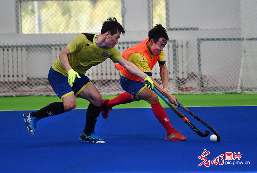 憑借良好的自然人文景觀、優美的自然環境以及怡人的氣候、濃厚的曲棍球文化氛圍,莫旗已成為國際、國內運動隊夏季訓練的首選之地。圖為2020年8月4日,莫旗曲棍球隊在莫旗曲棍球訓練基地訓練。(潘迪攝/光明圖片)