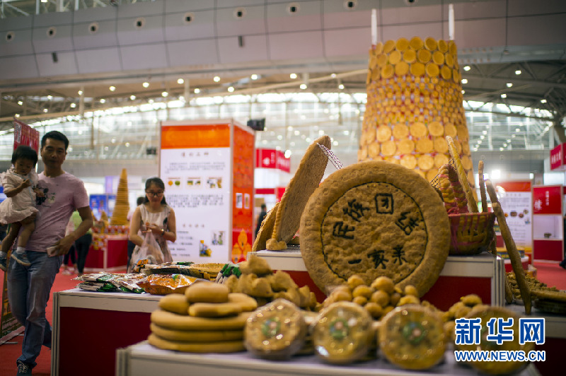 烏魯木齊國際食品餐飲博覽會上展示的各色烤馕。新華社記者 江文耀 攝