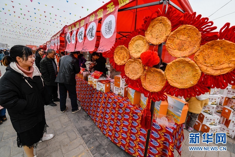 在一場馕文化節中,游客駐足欣賞包含馕元素的中國結。李飛 攝