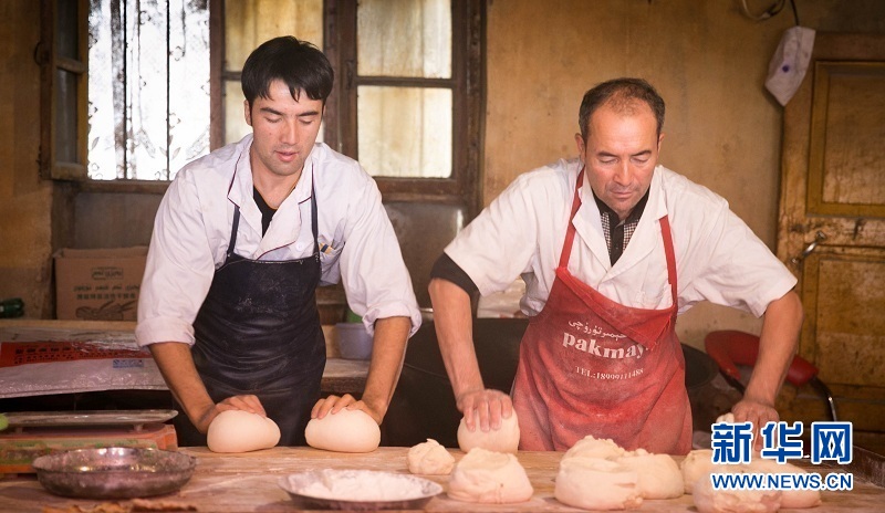 打馕人將和好的面揉制成團。新華網 杲均豐 攝