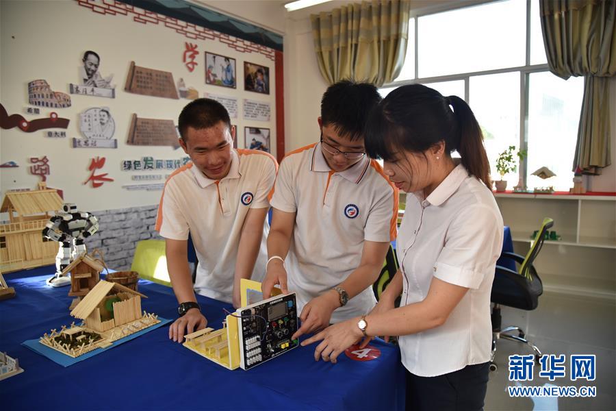 在貴州省黔南布依族苗族自治州長順縣民族高級中學,老師(右)指導學生開展科技活動(7月28日攝)。新華社記者 駱飛 攝 組團幫扶強內核 1年前,從長順縣貧困家庭走出的楊璐薇,第一次離家來到百公里外的貴陽實驗三中,在這里開啟3年高中生活。她不是跨縣“擇?!?,而是成為學校特殊“長順班”的一員。 “在省級示范高中設立貧困縣專班,3年后回縣里參加高考,讓貧困縣的孩子有機會享受全省最好的教育資源?!辟F陽實驗三中校長石艷梅說,這樣的探索既能改變山區孩子們的命運,更將為貧困地區未來發展播種希望。 “組團式”教育扶貧在長順縣進行了諸多探索:通過“智慧課堂”遠程指導教學,縣里的老師和省級名師同步上課“無縫對接”;在貧困縣中小學設立科技課堂,大山里的孩子第一次捧回全國性科技創新大賽獎杯;培育校園足球隊,不僅首次獲得全省中學生運動會冠軍,還幫助不少孩子通過足球特長考上理想大學。 “過去教學管理水平比較薄弱,中考成績優異或家里有條件的孩子,都到周邊縣市或貴陽讀高中。百姓對教育沒信心,發展怎么會有希望?!辟F陽六中校長魏林說,貴州兩個頂尖名校長工作室在長順設立工作站,長期派駐管理和教學人員駐校,全方位引入先進教學管理模式。教育質量提升贏得了百姓口碑,外流生源漸漸回來了。