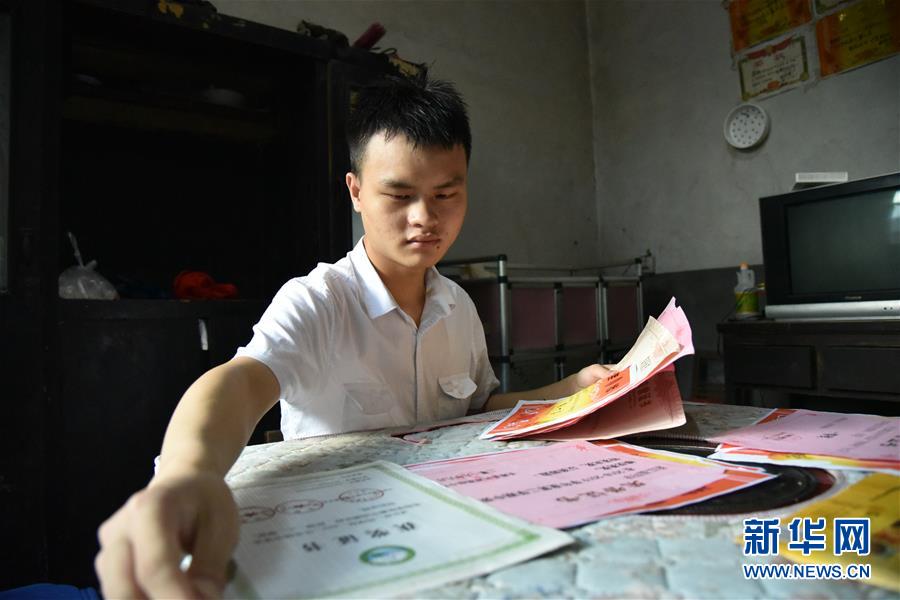 貴州省黔南布依族苗族自治州長順縣民族高級中學學生梁紅福在家中整理自己的獎狀,他今年高考考出了好成績(7月29日攝)。新華社記者 駱飛 攝 新華社貴陽8月10日電 題:托起貧困山鄉的未來——貴州“組團式”教育扶貧見聞 新華社記者駱飛 冗雷村是坐落在麻山腹地貴州省黔南布依族苗族自治州長順縣長寨鎮的一個貧困村,再過幾天,18歲的黃明孝就將收到他夢寐以求的錄取通知書。這個冗雷村建檔立卡貧困家庭走出來的布依族男孩,心中目標是同濟大學土木工程專業,成績優異的他信心十足。 三年間,長順縣整體教育面貌煥然一新,更多貧困家庭的孩子圓夢大學,越來越多打算到外地讀書的學生選擇回來?!敖M團式”教育扶貧改變了一個貧困縣孩子們的命運,更托起山鄉發展的未來。