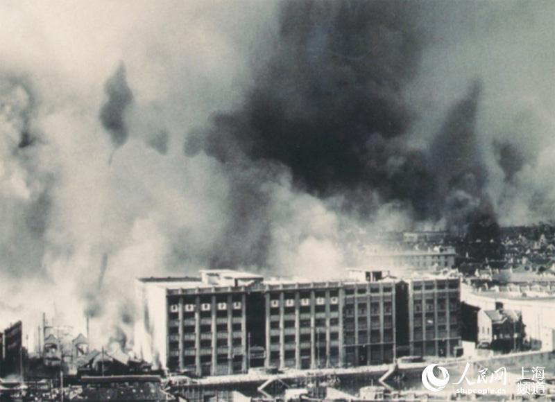 1937年,戰火中的四行倉庫。(資料圖) 黃浦江畔四行倉庫巍然聳立 “八百壯士”堅守陣地 擊退日軍次次進攻,誓死捍衛