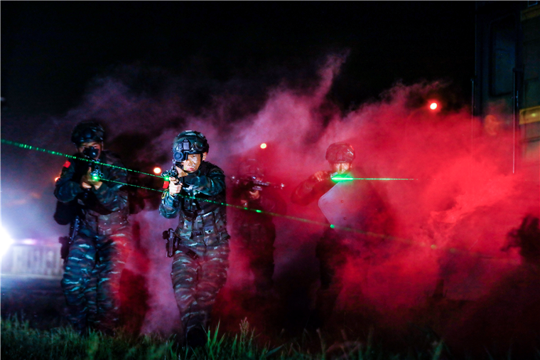 特戰隊員開展夜間協同搜索訓練。王良 攝