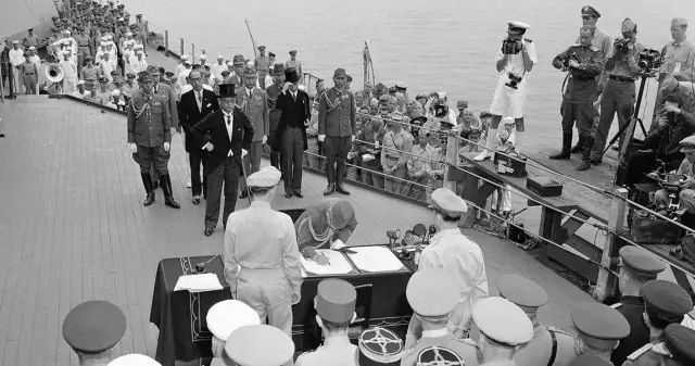 75年前,1945年9月2日 日本代表登上美軍“密蘇里號”軍艦 簽署了投降書 中、美、英、蘇等9國代表相繼簽字 接受日本投降 至此,中國人民抗日戰爭勝利結束 世界反法西斯戰爭也落下帷幕