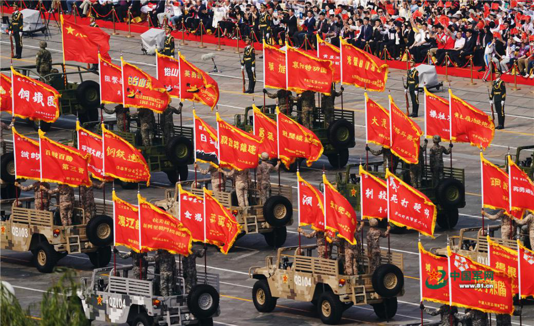 2019年10月1日,慶祝新中國成立70周年閱兵式上受閱的戰旗方隊。柳軍 攝
