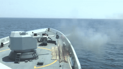 北部戰區海軍某驅逐艦支隊日照艦進行打擊海上不明目標實彈演習。
