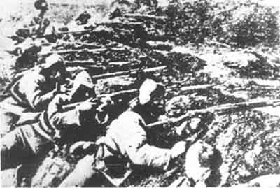 東北抗日聯軍戰士在伏擊敵人。(資料圖) 幾無任何自然屏障的淞滬平原 面對日軍主力在戰車、飛機配合下的瘋狂進攻 中國軍隊只能硬扛