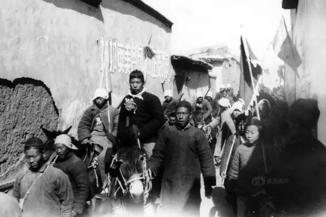 1942年,晉察冀邊區,河北平山縣村民歡送青年入伍。(資料圖) 在河北平山縣 抗戰期間人口為20-25萬人 就有1.2萬人參加了八路軍 5508人為國捐軀 很多村莊2/3的家庭都是烈屬