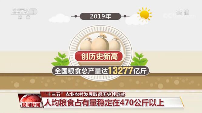 2020-10-28 17:14:05 來源:央視網 責任編輯:尤洋鑫 作者:點擊圖片觀看視頻 央視網消息:國務院新聞辦28日舉行發布會,農業農村部介紹,“十三五”期間,中央確立了農業農村優先發展總方針,作出實施鄉村振興戰略的重大決策部署,農業農村發展取得歷史性成就、發生歷史性變革。 人均糧食占有量穩定在470公斤以上