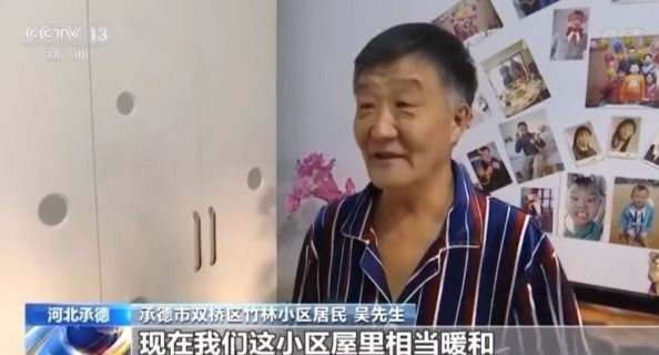 承德市雙橋區竹林小區居民 吳先生:現在這個天氣變化了,冷。我們這小區屋里相當暖和,20℃到22℃老這樣,在屋里穿這個還挺暖和,感覺挺暖心。