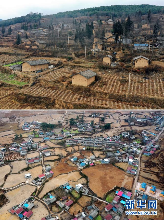 拼版照片:上圖是巴木玉布木童年住過的村莊(1月21日攝);下圖是她現在居住的桃園村(1月21日攝)。新華社記者 李思佳 攝 巴木玉布木的家鄉大涼山,是我國深度貧困地區。經過8年多的精準扶貧,涼山州累計減貧105.2萬人、2072個貧困村全部退出、11個貧困縣全部摘帽,區域性整體貧困和絕對貧困問題全面消除。廣大貧困群眾過上了“睡有床鋪、衣有儲柜、炊有灶臺、餐有桌凳、洗有熱水、烤有火爐、娛有電視、包里有錢、出門有硬化路”的新生活。 如今的桃園村,通了路、通了電、通了網、通了自來水,和巴木玉布木一樣,村里75戶建檔立卡貧困戶蓋了房、增了收,孩子們上了學。