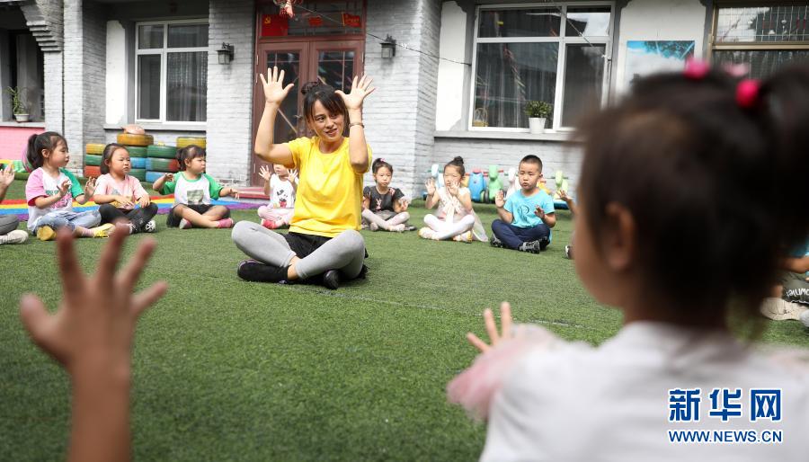 幼教老師在遼寧省鳳城市大梨樹村萌芽幼兒園里帶領孩子們游戲(2020年9月9日攝)。新華社記者 姚劍鋒 攝 報告“推動義務教育優質均衡發展和城鄉一體化”的內容,讓青海省門源縣教育工作者孔慶菊代表印象深刻。她說,要辦好人民滿意的教育,讓每個孩子都有人生出彩的機會。