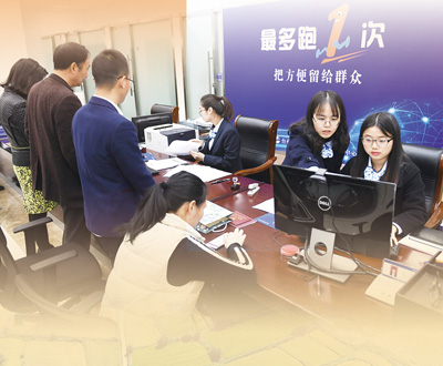 浙江省臺州市行政服務中心的工作人員在給市民辦理業務?! ⌒氯A社記者 殷博古攝
