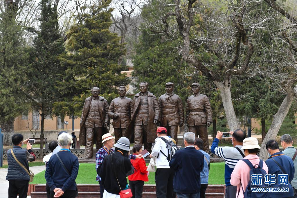 2021年3月29日,參觀者在延安市張思德廣場進行現場教學活動。新華社記者 張博文 攝