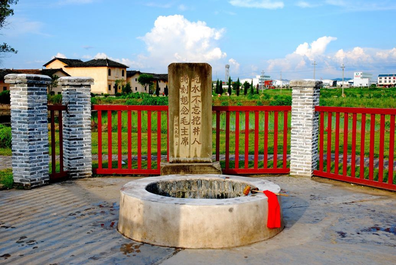 圖為“紅井”。為了表達沙洲壩人民對毛主席的感激之情,解放后,當地群眾將該井取名為“紅井”,并在井邊立了一塊木牌,書寫著:“吃水不忘開井人,時刻想念毛主席?!蔽迨甏?,“紅井”木牌更換了,并將木牌中“吃水不忘開井人”改為“吃水不忘挖井人”。六十年代初,“紅井”被國務院列為全國重點文物保護單位,木牌改為石碑,并在“紅井”周邊增加了圍柱。沙洲壩鎮黨委宣傳部供圖 飲水思源,不忘初心。傳承紅色基因,弘揚蘇區精神,沙洲壩村始終把為民造福擺在首位。