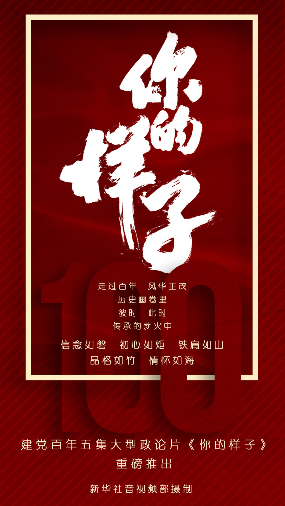 征途漫漫 道阻且長 百年滄桑 依舊風華正茂 建黨百年之際 新華社為中國共產黨畫像 用全新方式講述中國共產黨 砥礪奮進的百年歷史 以感天動地的故事 取新穎獨特的視角 回答歷史之問 2021年6月15日—6月19日 建黨百年五集大型政論片《你的樣子》 敬請期待 新華社音視頻部攝制