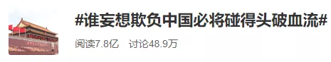 話題#誰妄想欺負中國必將碰得頭破血流#迅速登上熱搜,短短幾小時,閱讀就超過7.8億。(截至發稿,閱讀量還在快速增加。)