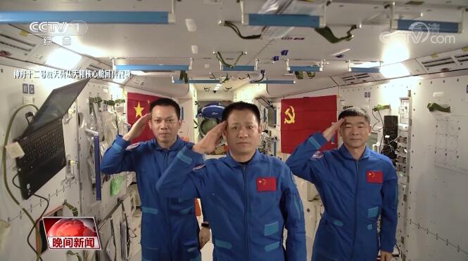 《偉大征程》文藝演出副總導演 田沁鑫:這么大的屏上,畫面里面的內容不能有任何瑕疵,我們要像繡花一樣非常細。用即時拍攝的這種方式,也是晚會形式所能接受的方式,我們最好的方法就是即時拍攝、即時現場剪輯。 在5G技術支持下,神舟十二號的3名航天員聶海勝、劉伯明、湯洪波從太空發來祝福,祝中國共產黨生日快樂。