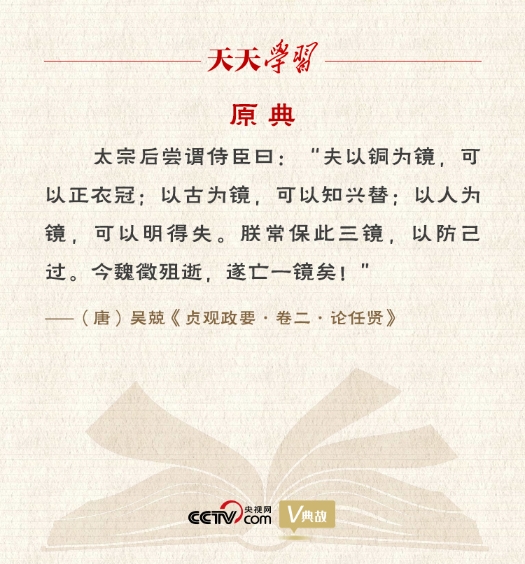 【釋義】 “以史為鑒,可以知興替”,最早應出自唐代史學家吳兢的政論性史書《貞觀政要》:“夫以銅為鏡,可以正衣冠;以古為鏡,可以知興替;以人為鏡,可以明得失?!边@是唐朝第一諍臣魏徵去世后,唐太宗對朝臣發出的感慨之言?!杜f唐書·魏徵傳》抄錄此語。后來,歐陽修、宋祁所編《新唐書·魏徵傳》對此略作修改:“以銅為鑒,可正衣冠;以古為鑒,可知興替;以人為鑒,可明得失?!边@句話的意思是,用銅作鏡子,可以端正衣冠;用歷史作鏡子,可以知道歷代興亡更替的規律;用人作鏡子,可以明了自身的得失。 唐太宗的這番話,揭示出照鏡子與修身治國的關系。貞觀初年,唐太宗求諫心切,曾對大臣說:“人欲自照,必須明鏡。主欲知過,必藉忠臣?!焙髞砦横绯闪怂汈Р豢呻x的“人鏡”。唐太宗稱:“徵箴規朕失,不可一日離左右?!保ā顿Y治通鑒·唐紀十》)魏徵對唐太宗勸諫道:“夫監(同“鑒”)形之美惡,必就止水;監政之安危,必取亡國?!保ā缎绿茣の横鐐鳌罚┫M铺谝运宄瘻缤鰹殍b。魏徵的面折廷爭,唐太宗的從諫如流,是成就“貞觀之治”的重要因素。惟其如此,魏徵去世后,唐太宗才會感嘆:“朕常保此三鏡,以防己過。今魏徵殂逝,遂亡一鏡矣!”言罷“泣下久之”。 對于唐太宗的“鏡子論”,白居易在《百煉鏡》詩中贊曰:“太宗常以人為鏡,鑒古鑒今不鑒容。四海安危居掌內,百王治亂懸心中。乃知天子別有鏡,不是揚州百煉銅?!?/p> 【解讀】 7月1日,中國共產黨迎來百年華誕。一百年來,從嘉興南湖駛出的一艘小小紅船,承載著人民的重托、民族的希望,穿越歷史洪流,激蕩時代風云,成為領航中國行穩致遠的巍巍巨輪。這一百年來開辟的偉大道路、創造的偉大事業、取得的偉大成就,必將載入中華民族發展史冊、人類文明發展史冊! 以史為鑒,可以知興替。在慶祝中國共產黨成立100周年大會上,習近平總書記發表重要講話,九次強調“以史為鑒、開創未來”,指出“我們要用歷史映照現實、遠觀未來,從中國共產黨的百年奮斗中看清楚過去我們為什么能夠成功、弄明白未來我們怎樣才能繼續成功,從而在新的征程上更加堅定、更加自覺地牢記初心使命、開創美好未來”。 重視歷史、研究歷史、借鑒歷史是中華民族5000多年文明的優良傳統?;仡欬h的百年光輝歷程,以史為鑒始終是我們黨教育黨員干部的有力武器。延安整風時期,毛主席就把郭沫若的《甲申三百年祭》作為整風文獻讓全黨學習,警惕步李自成的后塵。1945年7月,在延安窯洞中,民主人士黃炎培向毛主席提出如何跳出“歷史周期率”支配的問題,引起中共領導人對歷史鏡鑒的高度重視。北平和平解放后,黨中央從西柏坡遷往北平途中,毛主席立下“進京‘趕考’去”“我們決不當李自成”的誓言。人民解放軍占領南京后,毛主席又賦詩號召“宜將剩勇追窮寇,不可沽名學霸王”,表示以史為鑒,決不重蹈項羽的覆轍。 黨的十八大以來,習近平總書記高度重視以史為鑒,指出歷史是最好的教科書,也是最好的清醒劑。要求領導干部把學習黨史、國史作為“必修課”,“這門功課不僅必修,而且必須修好”。在慶祝中國共產黨成立95周年大會上,習近平總書記一語道出以歷史為鏡鑒的目的和意義:“‘明鏡所以照形,古事所以知今?!裉?,我們回顧歷史,不是為了從成功中尋求慰藉,更不是為了躺在功勞簿上、為回避今天面臨的困難和問題尋找借口,而是為了總結歷史經驗、把握歷史規律,增強開拓前進的勇氣和力量?!?/p> 過去一百年,中國共產黨向人民、向歷史交出了一份優異答卷?,F在,中國共產黨團結帶領中國人民又踏上了實現第二個百年奮斗目標新的趕考之路。新的征程上,我們在感慨黨的百年輝煌和百年榮光的同時,更要以史為鑒、開創未來。我們要永遠保持建黨時中國共產黨人的奮斗精神,永遠保持對人民的赤子之心。一切向前走,都不能忘記走過的路;走得再遠、走到再光輝的未來,也不能忘記走過的過去,不能忘記為什么出發。只有與歷史同步伐、與時代共命運的人,才能贏得光明的未來。 (作者 楊立新) |