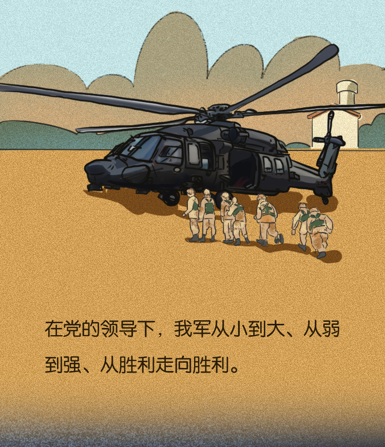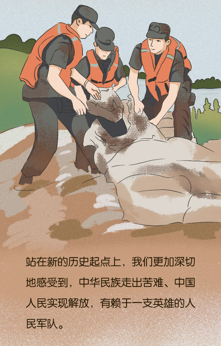 “自那時起,中國共產黨領導下的人民軍隊,就英勇投身為中國人民求解放、求幸福,為中華民族謀獨立、謀復興的歷史洪流,同中國人民和中華民族的命運緊緊連在了一起?!秉h的十八大以來,習近平主席多次在不同場合講述人民軍隊發展史。