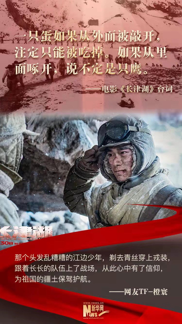 電影《長津湖》重現了71年前發生在抗美援朝戰爭東線戰場上那場驚心動魄的戰役,無數觀眾在觀影中一次次破防落淚,而其中的經典臺詞,更是深深戳中網友淚點。