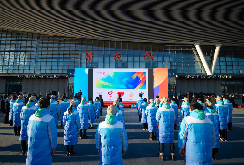 12月6日,北京2022年冬奧會和冬殘奧會城市志愿者(北京市)誓師大會在北京的京張高鐵清河站舉行,50余名城市志愿者代表參加了活動。
