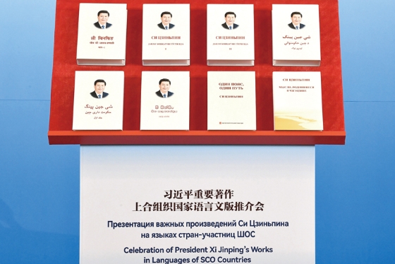 圖為2021年11月17日,習近平重要著作上合組織國家語言文版推介會在北京舉行,《習近平談治國理政》第一卷印地文、普什圖文、達里文、僧伽羅文、烏茲別克文,第二卷烏茲別克文和《之江新語》《習近平談“一帶一路”》俄文版等8種新書在推介會首發。 新華社記者 李賀/攝