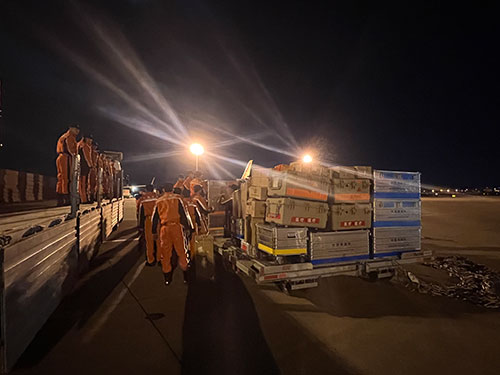當地時間2月8日凌晨4點30分(北京時間9時30分),中國救援隊一行82人經過約10小時的飛行,抵達土耳其阿達納機場。隊長趙明介紹,根據當地實際情況,中國救援隊立即開展卸貨轉運工作,盡快做好與我駐土耳其使館、當地政府、聯合國有關機構對接,結合目前救援進展情況,接領具體搜救行動任務,并擬派出救援小隊對執行任務場地進行實地勘查,同時選擇安全合適的位置搭建營地。