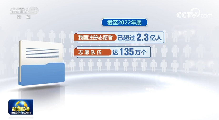 統計數據顯示,截至2022年底,我國注冊志愿者已超過2.3億人,志愿隊伍總數達135萬個。廣為弘揚的雷鋒精神,成為新時代推進社會主義現代化建設、提升社會文明進步的強大力量。
