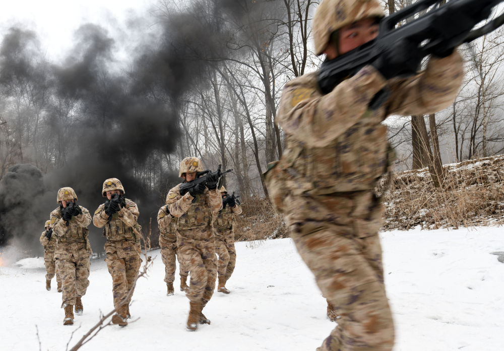 ↑第79集團軍某旅“雷鋒班”進行班戰術訓練(2月12日攝)。新華社發(譚長俊 攝)