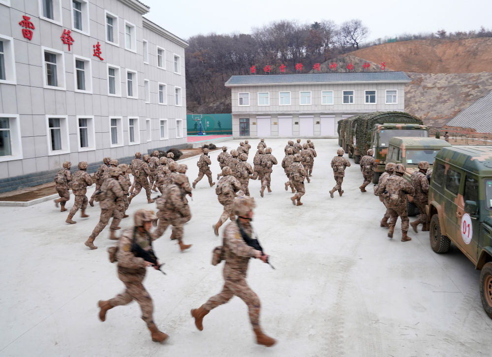 ↑第79集團軍某旅“雷鋒班”參加連隊組織的戰備演練(2月17日攝)。新華社記者 張永進 攝