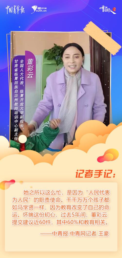 她之所以這么忙,是因為“人民代表為人民”的職責使命。千千萬萬個孩子都如馬學賢一樣,因為教育改變了自己的命運。懷揣這份初心,過去5年間,董彩云提交建議近60件,其中60%和教育相關。