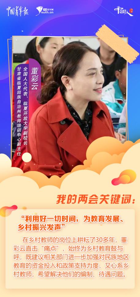 該州所轄八縣市曾是六盤山集中連片特困片區扶貧開發重點縣,教育基礎條件薄弱、教育教學質量不高、高層次師資力量匱乏。在鄉村教師的崗位上耕耘了30多年,董彩云直擊“痛點”,始終為鄉村教育鼓與呼,既建議相關部門進一步加強對民族地區教育的資金投入和政策支持力度,又心系鄉村教師,希望解決他們的編制、待遇問題。