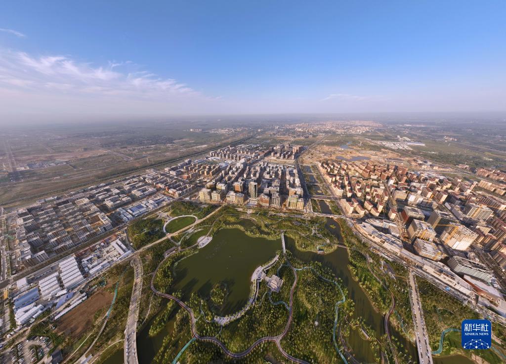 這是清晨時分的雄安新區容東片區(2022年9月8日攝,無人機照片)。新華社記者 邢廣利 攝