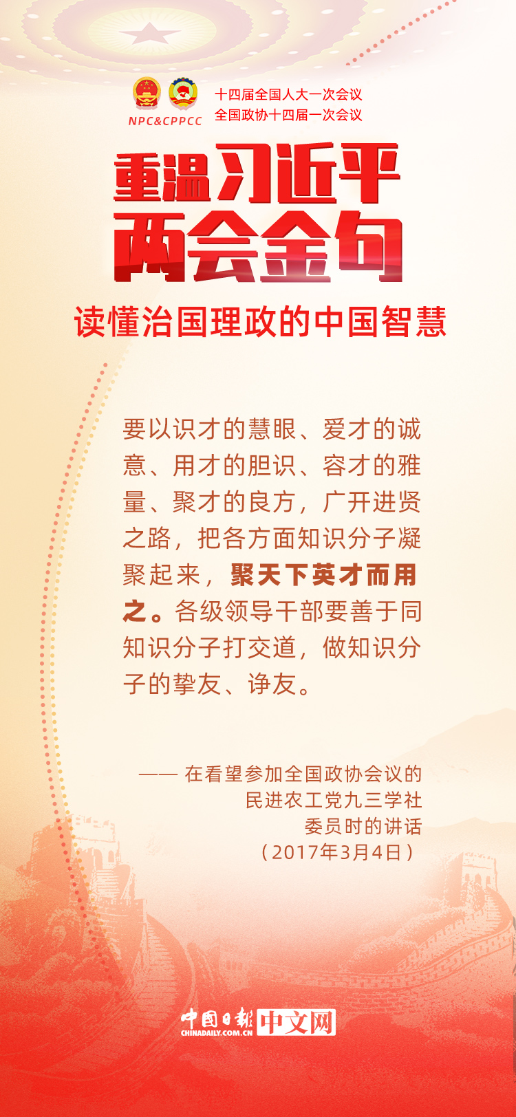 黨的十八大以來,每年兩會期間,習近平總書記都要與代表委員共商國是。十年來,在一系列重要論述中,習近平總書記使用詩詞、古語等典故,把中華優秀傳統文化融入治國理政的理論和實踐中。