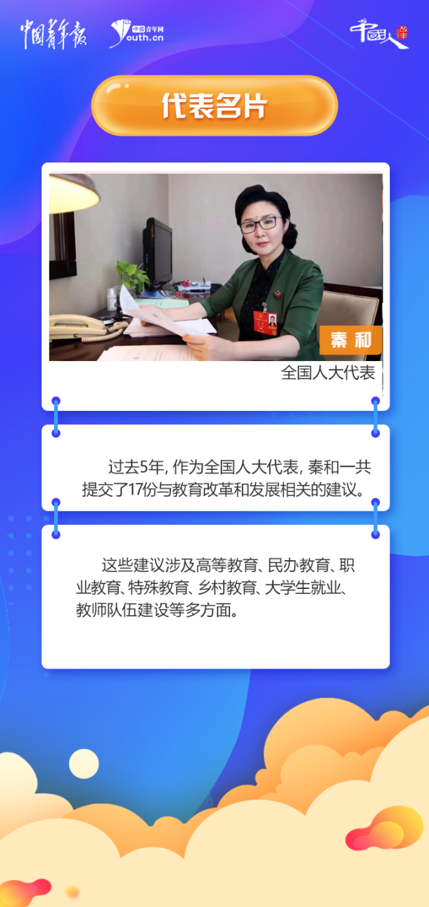 成為全國人大代表以來,秦和的視角漸漸從民辦教育擴展到了教育的各個領域,她不斷為教育領域的薄弱環節奔走調研,建言獻策,一步步地努力去實現自己的教育夢想。 記者:王培蓮 統籌:劉世昕 楊月 安俐 設計:楚穎盈(實習) |